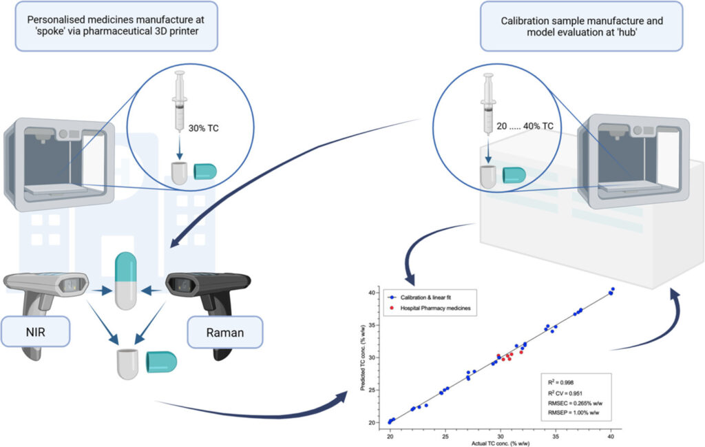 The study shows that compact NIR and Raman analysers can support safe, efficient quality control of 3D printed medicines in hospital pharmacies. It also highlights how hub-and-spoke model development could accelerate the wider adoption of decentralised pharmaceutical manufacturing, with future choices between technologies shaped by cost, integration, and practical deployment.